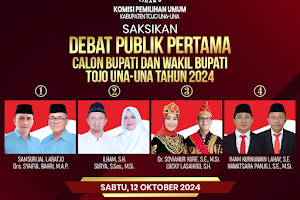 Saksikan Debat Publik Pertama Calon Bupati dan Wakil Bupati Tojo Una-Una pada Pemilihan Serentak Tahun 2024